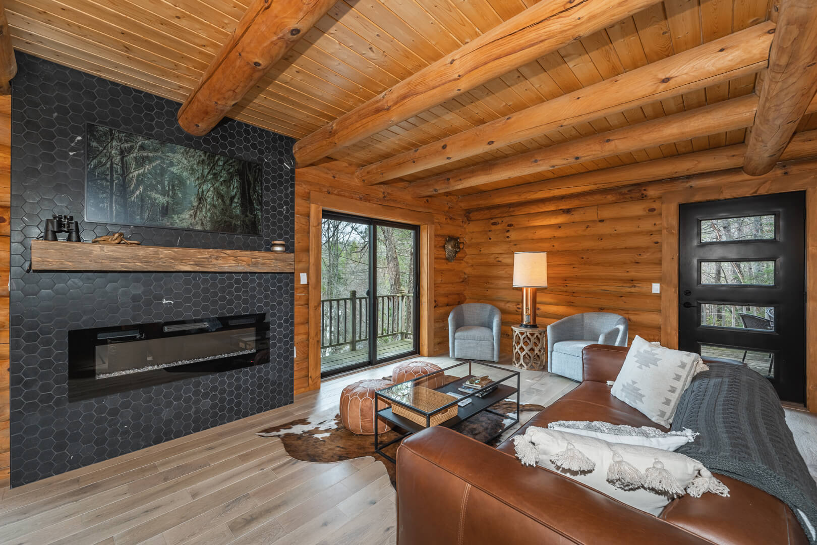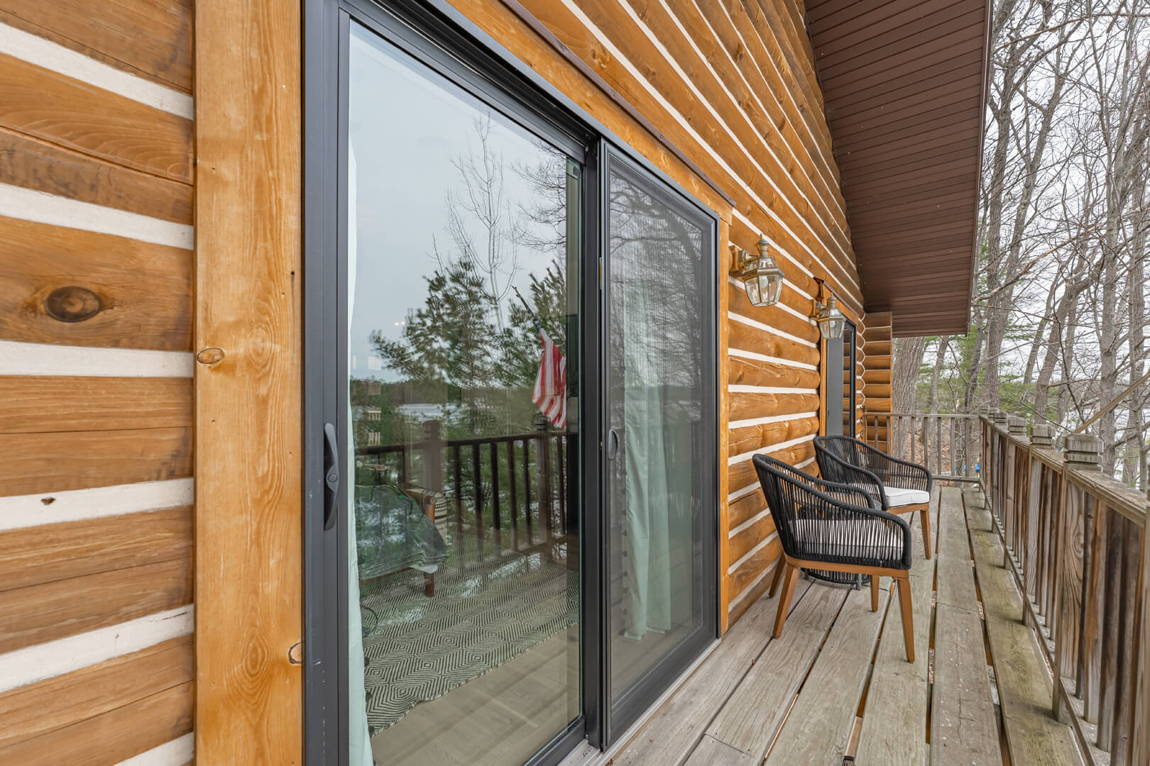 Step into a fully renovated 3-bedroom, 2.5-bathroom log cabin nestled along the shores of a pristine recreational lake in Wisconsin. This enchanting retreat boasts modern amenities, including central air.